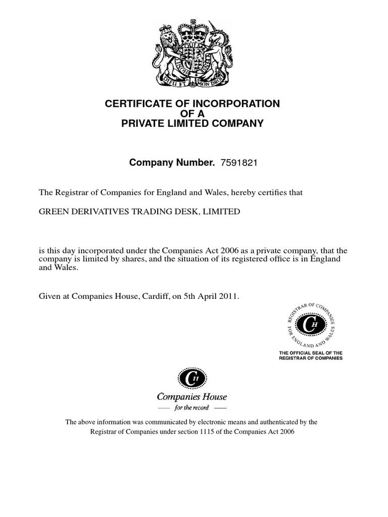 A certificate of incorporation is something all businesses get when they register with companies house companies house. This is an important document which provides details about your company and shows that it is a separate legal entity, distinct from.
